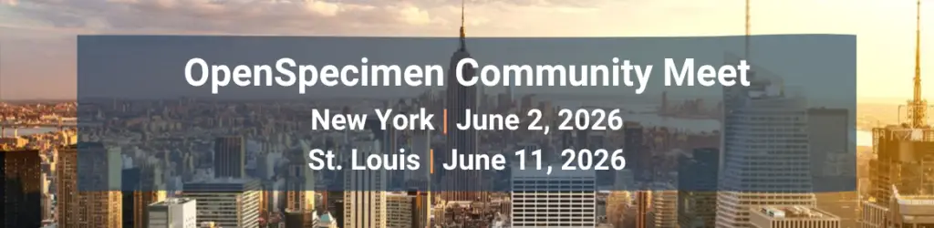 We are pleased to announce this year’s OpenSpecimen US Community Meet - OSCON26. Join us in New York and St. Louis to attend workshops and training sessions, and to meet the OpenSpecimen users.